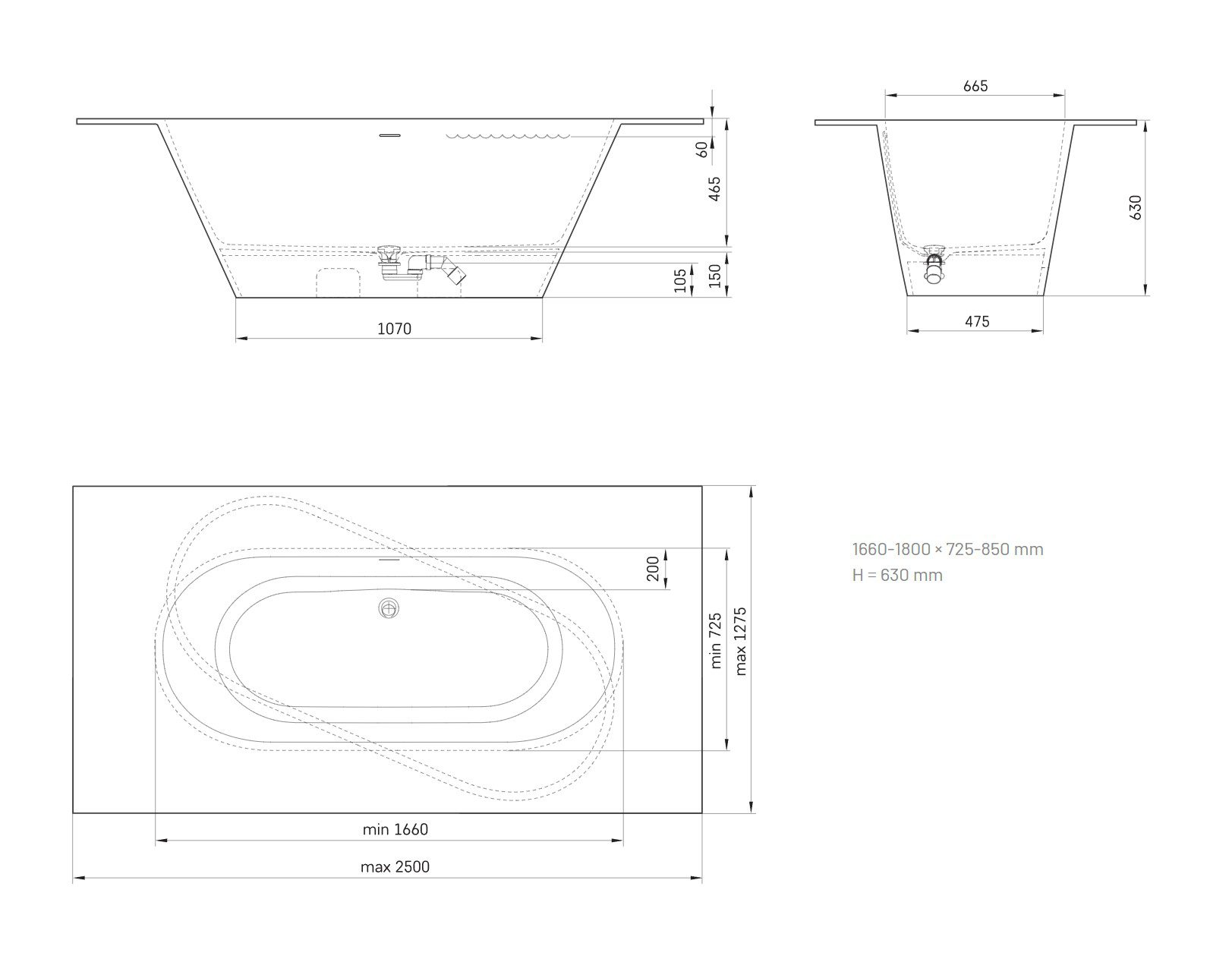 Sisseehitatud malmvannide mudelid pakuvad heas valikus mõõte. Mõõdud varieeruvad kompaktsetest 1200 x 700 mm lahendustest kuni avarate 800 x 1810 mm mudeliteni, muutes lihtsamaks leida vann, mis sobib teie konkreetse vannitoa mõõtudega ja pakub seejuures malmvanni eeliseid.